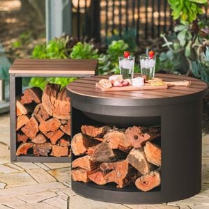 The Rhone Fire Pit with Lid from Mimosa offers year-round versatility for your outdoor decor space. Enjoy the warmth and ambience of a fire pit during the cooler months, then transform it into a stylish outdoor table with wood storage when not in use.