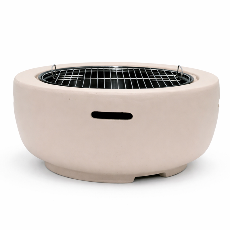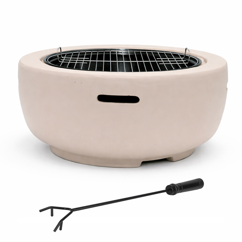 Create a warm and inviting outdoor setting with the Mimosa Faux Concrete Fire Pit. Featuring a contemporary MGO outer shell with a natural concrete look, this fire pit combines style and durability. The painted steel firebowl and spark mesh provide reliable performance, while the included charcoal and cooking grids let you easily grill over the flame. Perfect for entertaining, it delivers both ambience and functionality in one versatile backyard centrepiece.